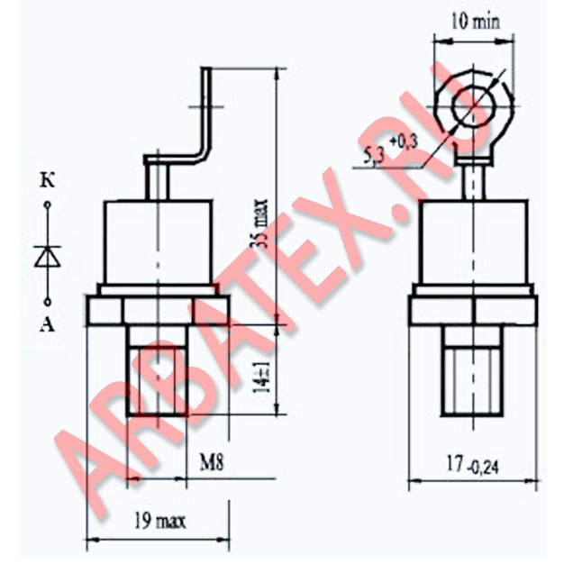 Масса диода не более 27 г.