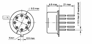 Корпус типа 301.8-2, масса не более 1,5 г.