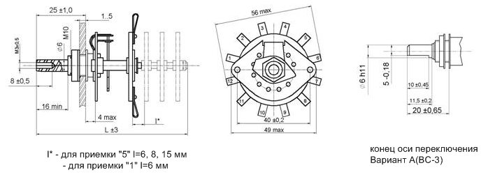 Для переключателей, имеющих ось с конической лыской, после цифры, обозначающей расстояние между платами, буквенное обозначение варианта оси отсутствует.