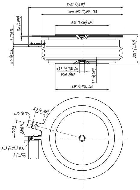 Надёжность теплоотдачи и электрического контакта между сопрягаемыми поверхностями тиристора и охладителя во всём диапазоне температур обеспечивается соответствующим закручивающим моментом.
